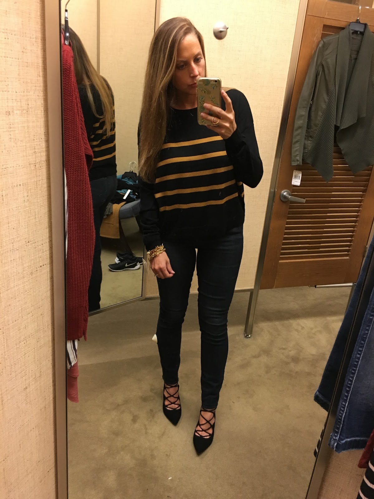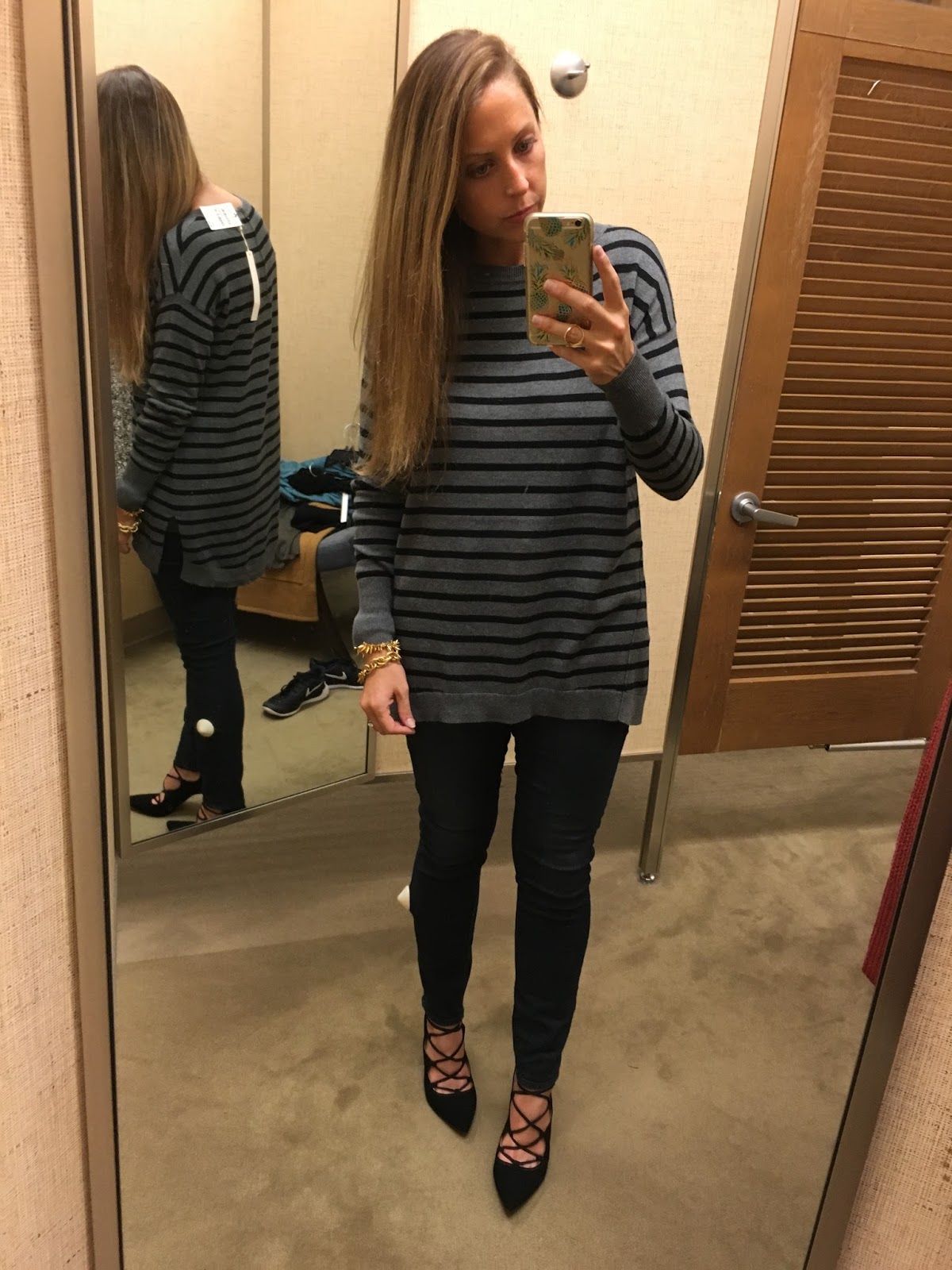 Happy Friday! As you know today is the first day that the Nordstrom Anniversary Sale is open to EVERYONE including those that are not Nordstrom card holders. You can see more of my sale picks in this post, & this post. The below photos are items I tried on in the dressing room & also shared on Snapchat (lawrenbagley). I was going for mostly staple items that I can wear for years, & also items that I can begin wearing now as well as months from now. I’m sharing sizing information as well as other random fit info, but if there’s any other questions you have about any of the items just let me know! Click on the pic below my pic to shop the items. PS- I am literally wearing only two pairs of shoes & jeans in all photos- one pair is my wedges which can be found here, & the lace ups are part of the sale. Sorry I didn’t have a chance to style with boots/booties, I was pressed for time. I’m sharing the good, the bad & the ugly, so enjoy!